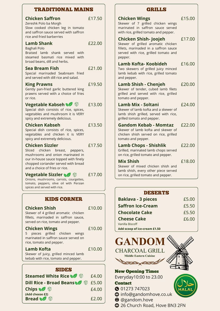 Marinated in house and grilled tender lamb chops full of flavour served with Persian white rice.